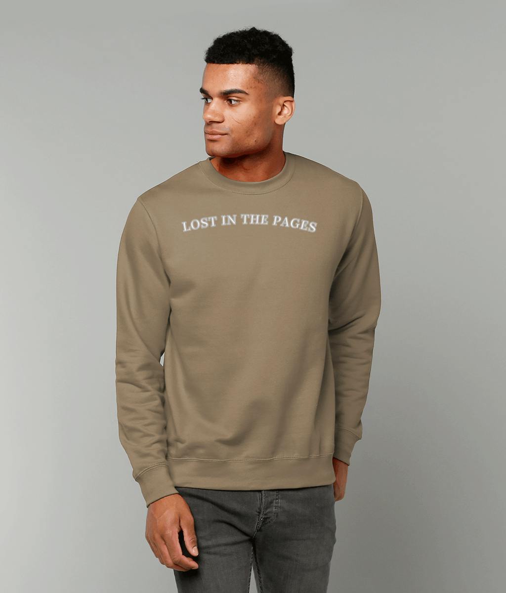 For those who wander through stories and find home between the lines, the “Lost in the Pages” Embroidered Sweatshirt is a soft, grounded tribute to narrative escape. Printed across the chest in crisp white block lettering, the phrase LOST IN THE PAGES declares your devotion to fictional worlds.